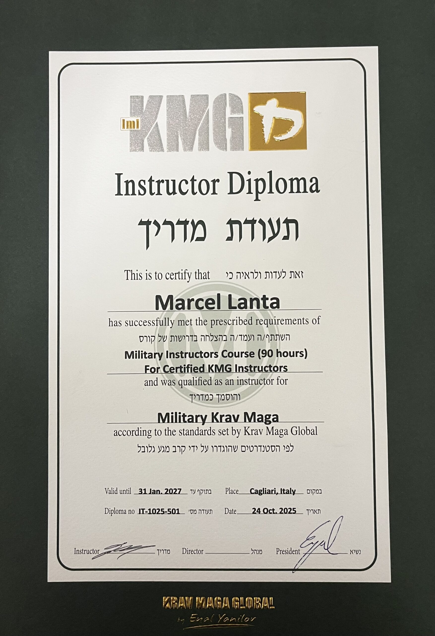 - 2025 – Krav Maga Military Instructor (KMG)